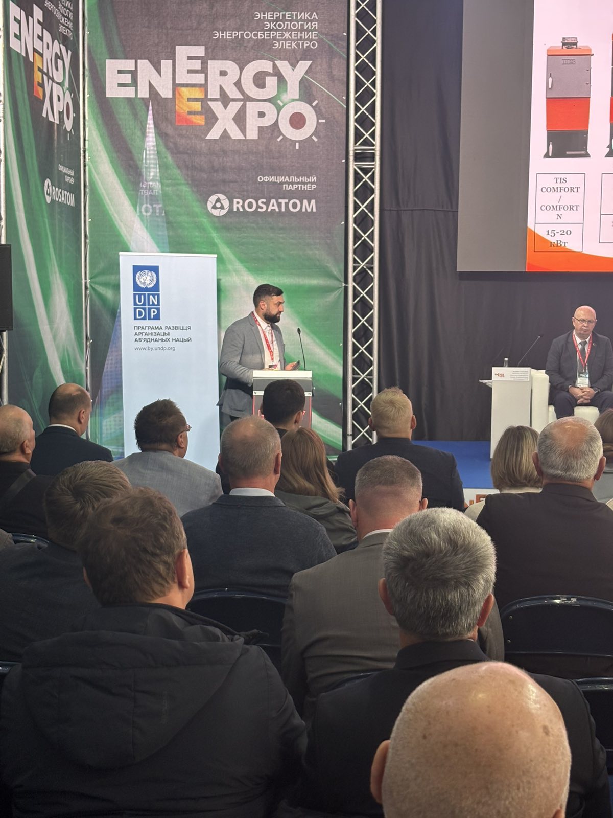 Компанию БелКомин представил Мазуров Роман Александровича, инженер- конструктор с докладом на тему «Преимущества использования пеллет на оборудовании завода «БелКомин» на энергоисточниках Республики Беларусь».